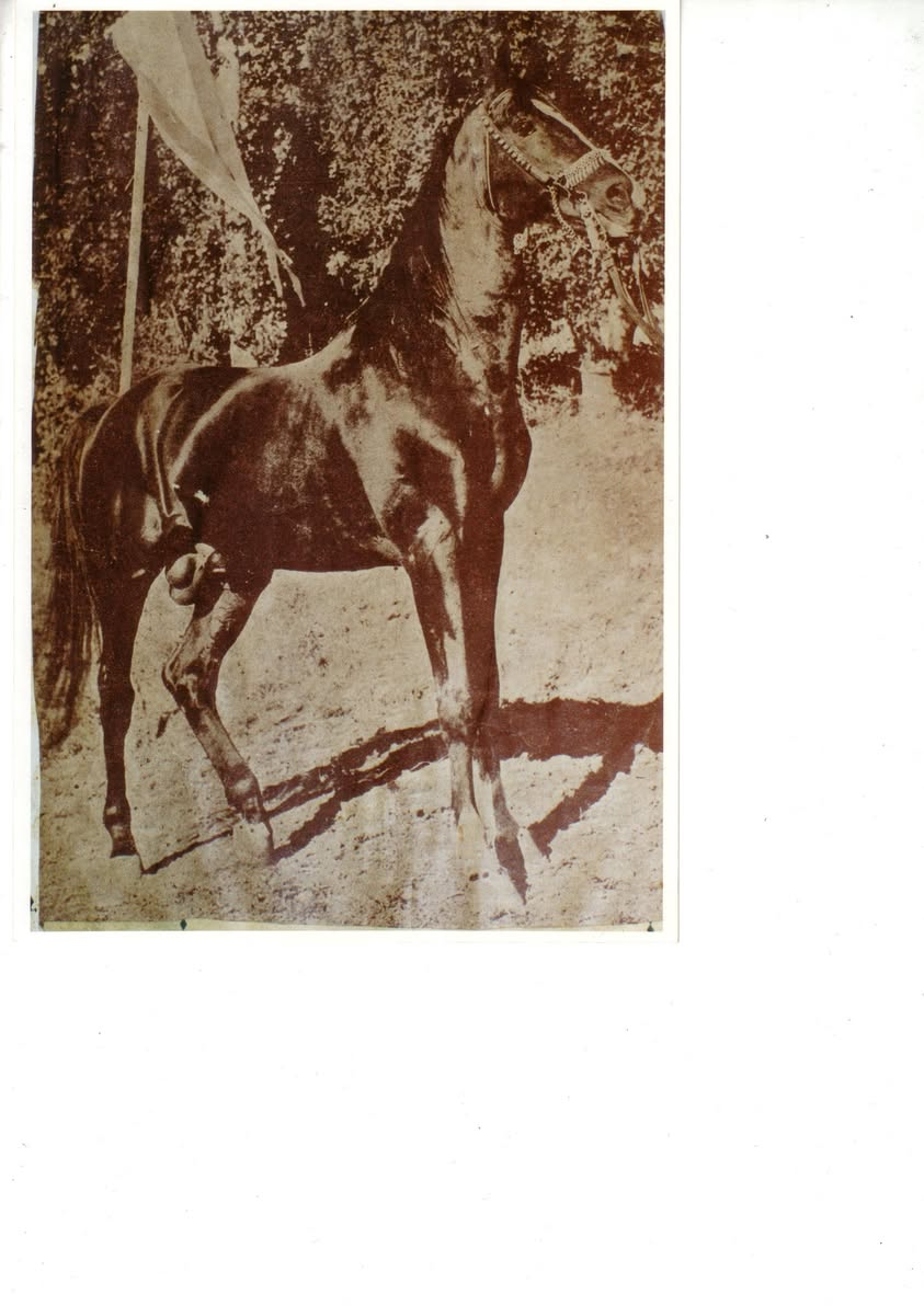 وإليكم صورة نادرة جدًّا تنشر لأول مرة للفرس ستّ الكل كحيلة كروش وهي من أحفاد نواق القنيع وغيره من أطايب خيل حماه وحمص القديمة الاصيلة التي لا غبار عليها