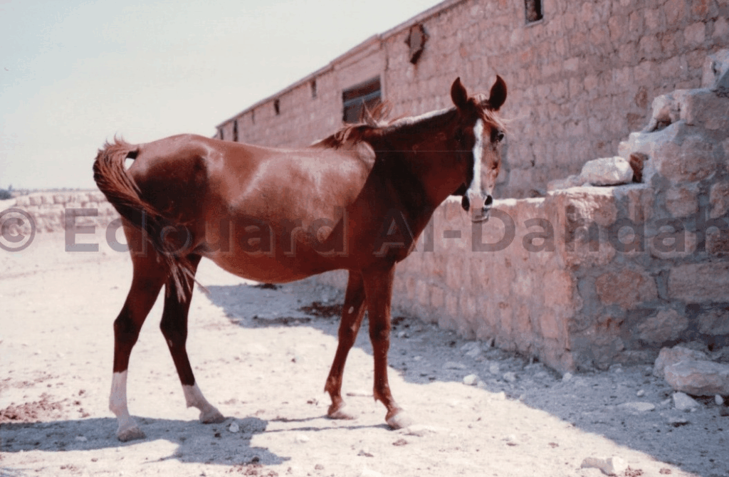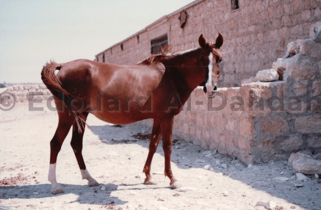 وإليكم الآن صورة أنشرها لأول مرة للفرس هالة بنت نواق عيادة الماضي وهي كحيلة الممرح من خيرة خيل سوريا كانت ملكًا للمرحوم أبو إحسان والصورة من تصويري عام 1993 قبيل تصديرها للخليج