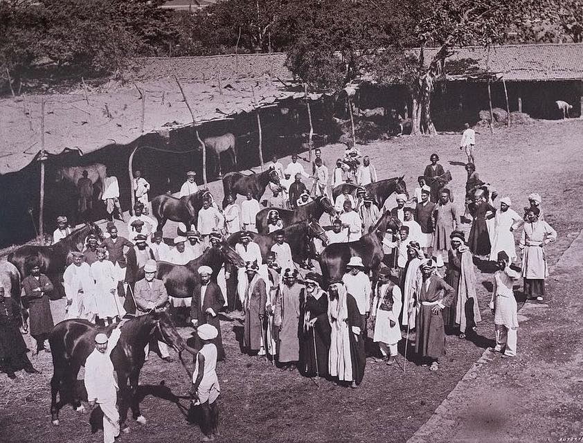 Also from the Facebook page “The Old Bahrain” this photo labeled: “Arab traders can be seen in a photo taken at the Arabian horse market in Bombay, India, around 1898“