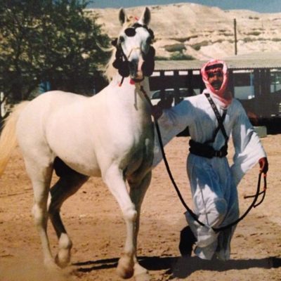From Mohammed al-Matrooshi’s social media accounts come these photos of the very masculine 1986 Bahraini stallion Jellaby Kher M45, by Rabdaan Alwasmy (M19) {Maanagy Al Ahmar X Rabda (M16) } out of Jellabieh Al Khar’aa (M3) {Hamdany Riyadh X Jellabieh (M1)}, bred and owned by Sheikh Mohammad Bin Salman Al Khalifa.