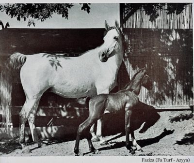 … is this picture of Faziza (Fa Turf x Azyya by Kenur out of *Aziza), the half Saudi, half Egyptian Arabian mare exported by Krausnicks to W.G. Olms of Germany. The picture is from Foppe Klynstra book, “Nobility of the Desert”.