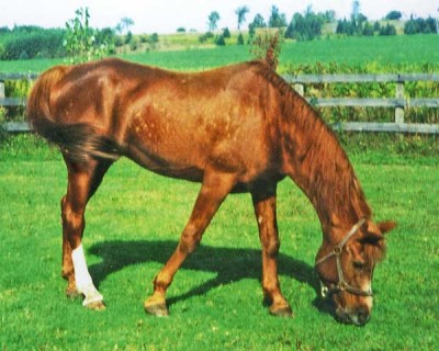 2. Cinnabar Myst (ASF David x Mystalla), a chestnut 1992 full sister to the above. Neither has had progeny so far. Both this one and her full sister are with Trish Stockhecke in Canada and available for sale.