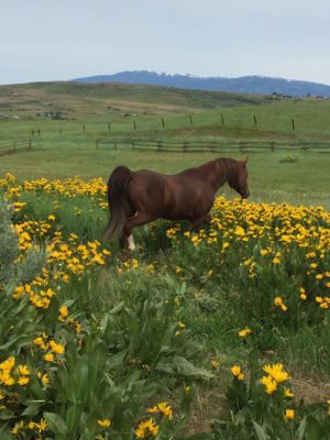 Pictures of Jabbar in the Idaho mountains follow. Thank goodness for horses like him, bold movers with high withers, extravagant tail carriage, short backs, naturally arched necks, expressive eyes (not the inflated ‘parrot eye’ of show creatures) and a flawless pedigree.