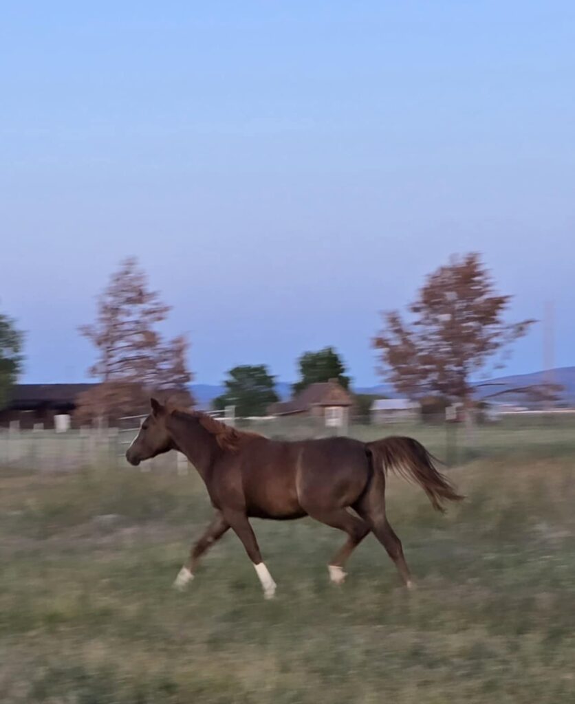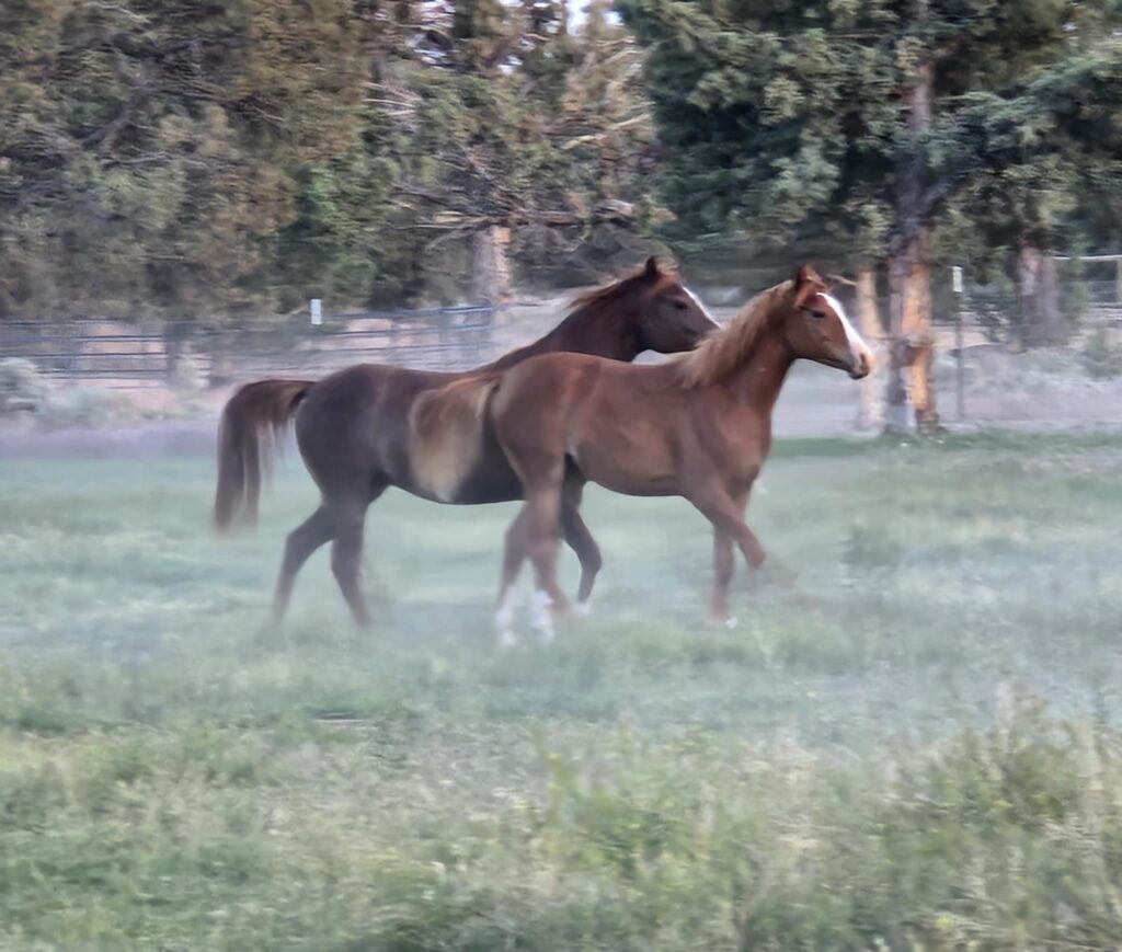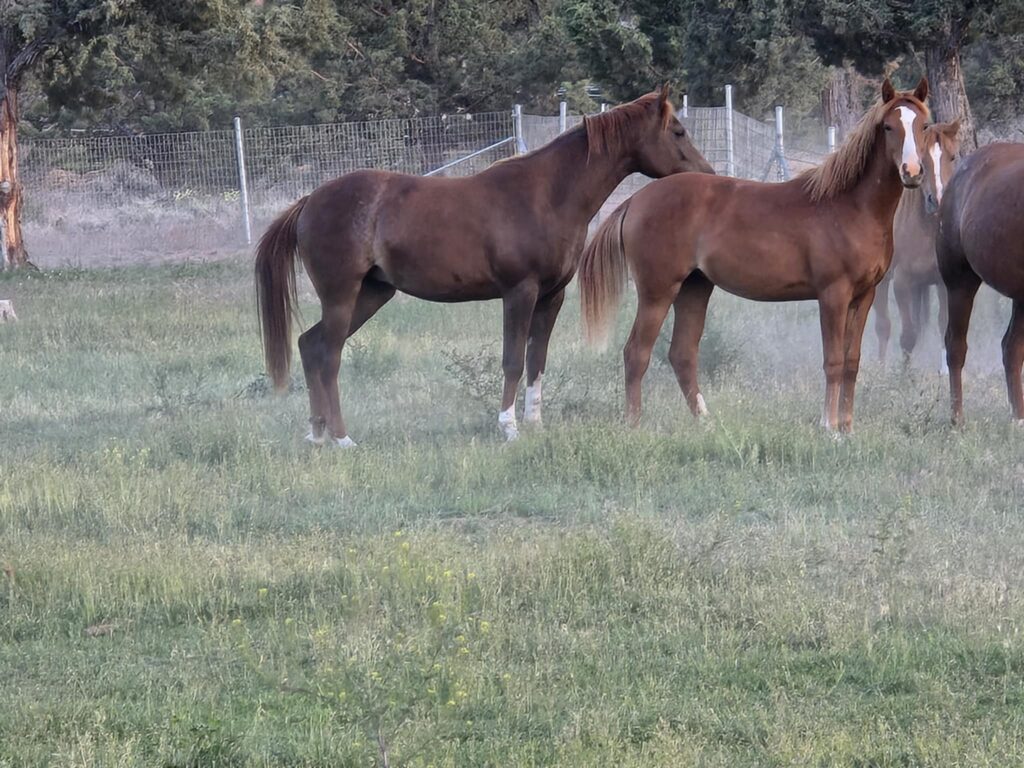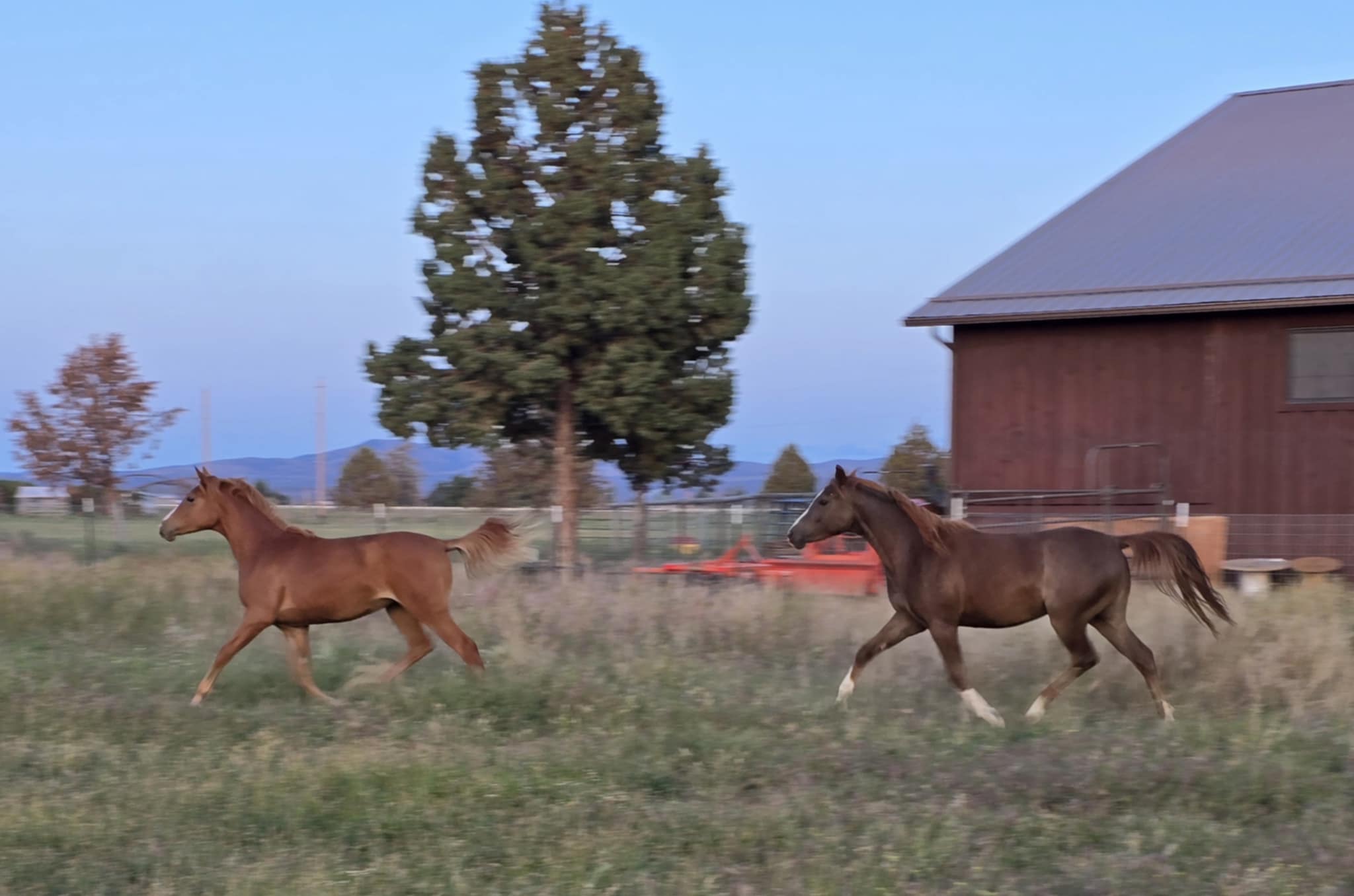 DeWayne was at the Doyle ranch this weekend and took photos of two year old Shamsah Al Arab (Cascade DE x SS Lady Guenevere, b. 2023), the dark chestnut one; and long weanling Karma Al Arab (Bashir Al Dirri x Kinza Al Arab, b. 2024), the lighter chestnut one. I am equally pleased with both in general. Good blood does not lie and always delivers, the challenge is to recognize it.