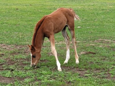 Young Sharif really is a looker. DeWayne Brown who owns his dam Pippa, visited the Doyle farm last weekend and took the pictures. You gotta love the Doyle motor on this Ma’naqi colt. And the black skin around the eyes. Terry Doyle is standing in the background.