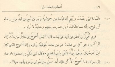 “Muhriz son of Ja’far, claimed, after his father, after his grandfather, saying: ‘The A’waj of Bani Hilal is not out of the daughters of Zad al-Rakib, he is older than that! He is out of the daughters of the wild ones of Wabar [min banat hushiyyat Wabar].